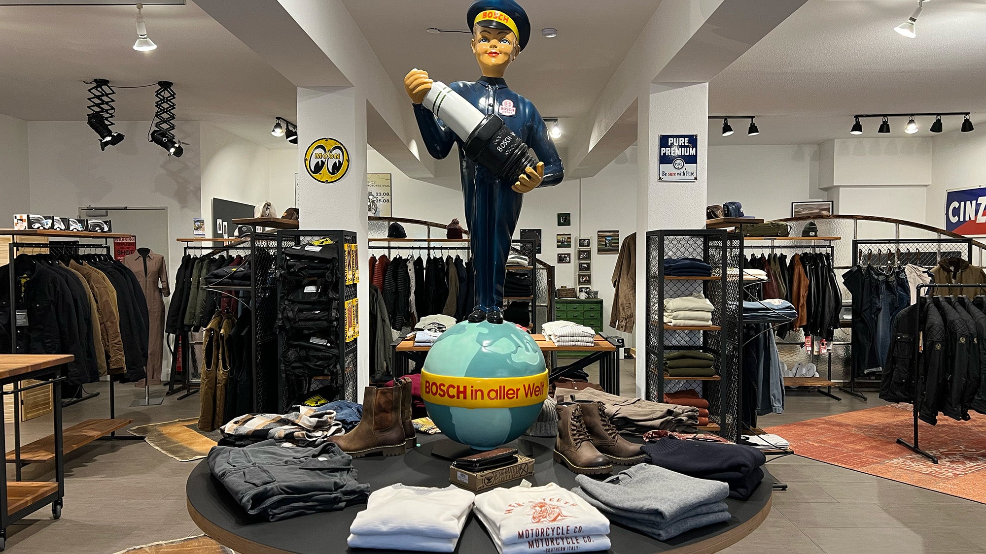 Dans notre magasin de l'ancienne station-service d'Ostermünchen, vous pouvez essayer et acheter des classiques ainsi que nos derniers produits. Barbara, Christine ou Matthias vous attendent avec plein de conseils honnêtes pour que vous ayez bonne mine. Il existe de nombreux parkings balisés pour les motos et les voitures.